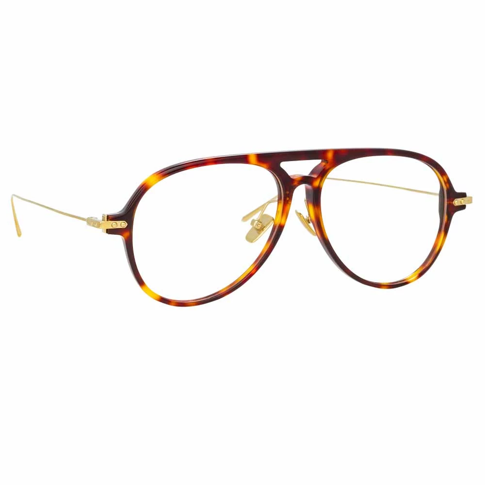 A bold yet refined take on the aviator, these men’s optical glasses from the Linda Farrow LINEAR collection are crafted from tortoiseshell Italian hand polished acetate and ultra lightweight 18-22 carat luna gold-plated titanium.
