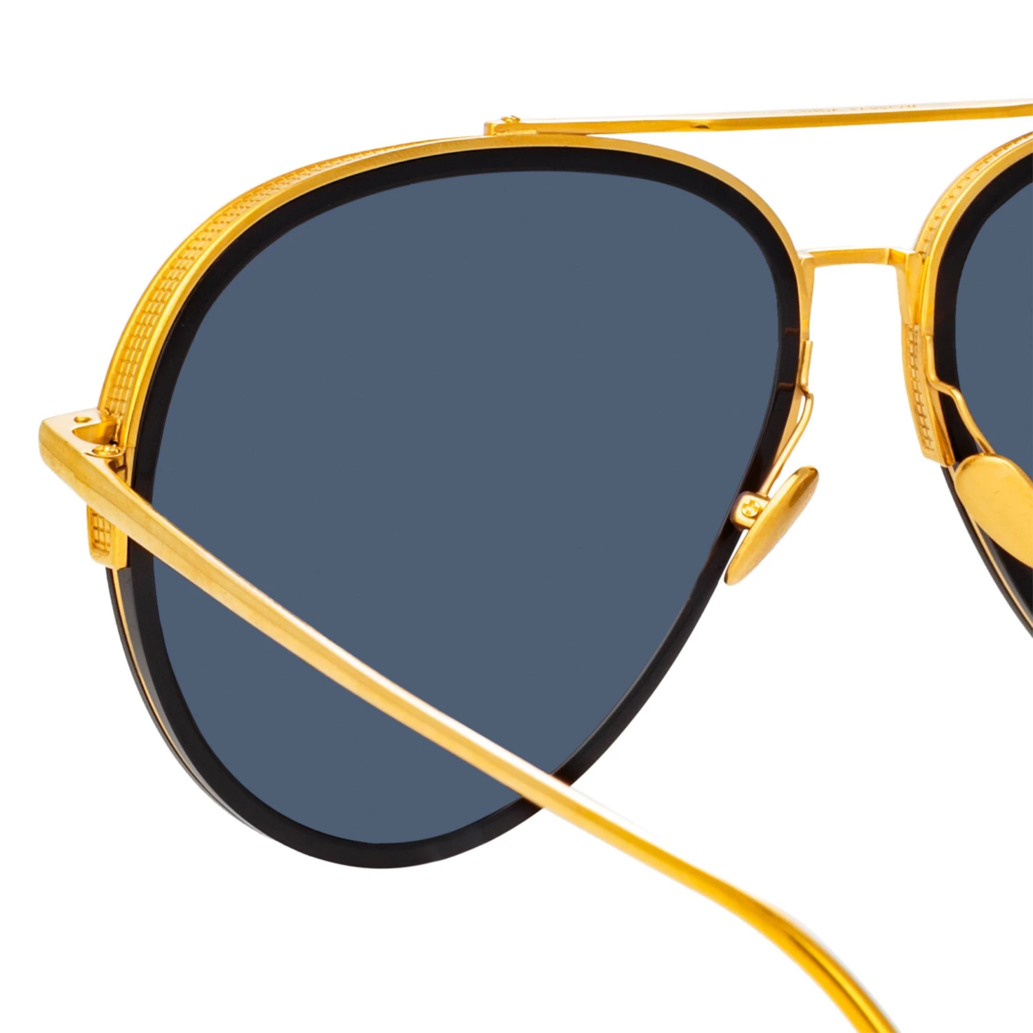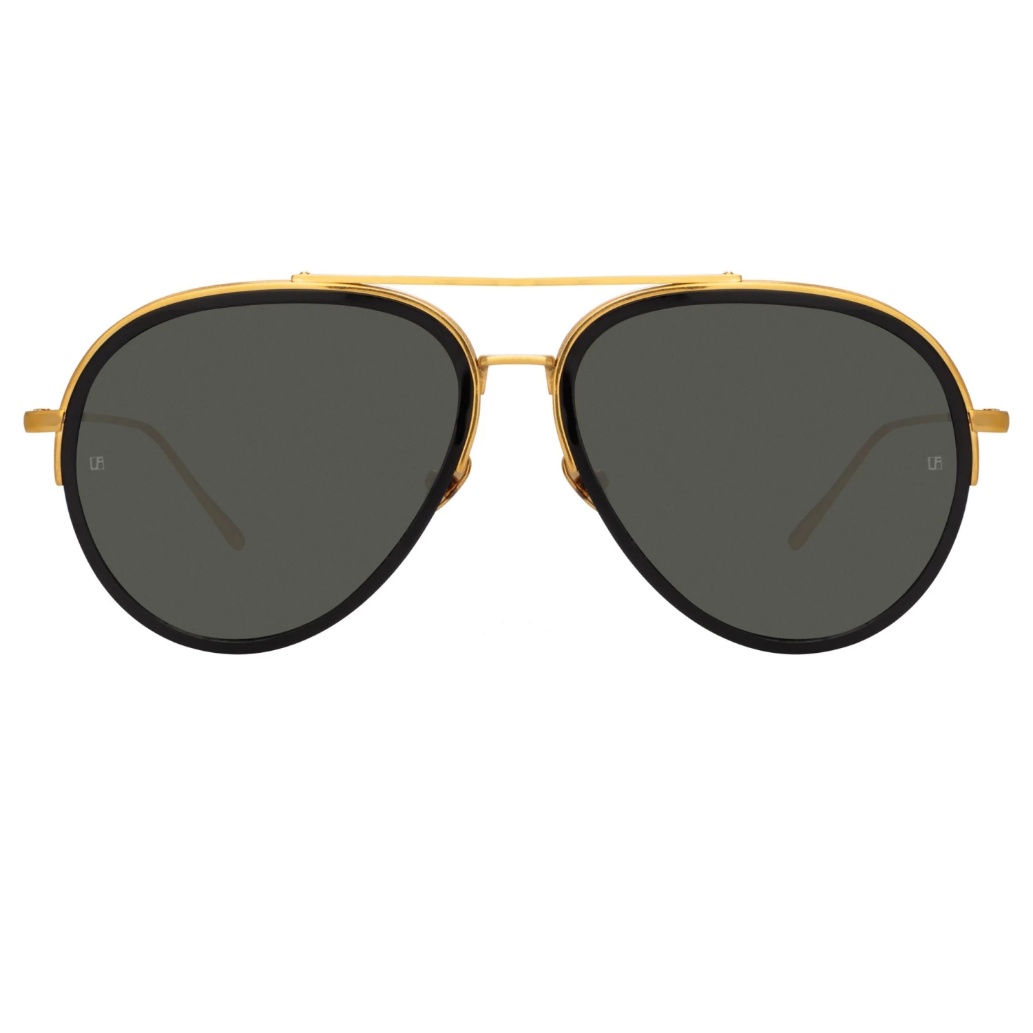 LINDA FARROW (U.K.) Abel Aviator Sunglasses In Black And Yellow Gold Women’s