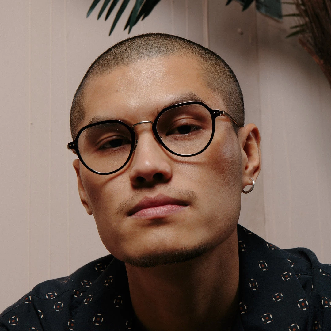 Angles and industrial details bring the LINDA FARROW DNA to the Axel optical frame. Molded entirely from pure Japanese titanium, the body of the frame has a metallic brown finish applied to the front surface leaving the 22 carat light gold plated titanium as a hidden detail on the inside. Screwed theough the frame is a logo nose bridge which transitions to adjustable nose pads for a tailored fit. Branded with our new signature temple which has been sculpted to take on a graduated form sweeping from hinge to tip. A concave outer tip detail is echoed by a rounded inner tip to provide superior comfort.