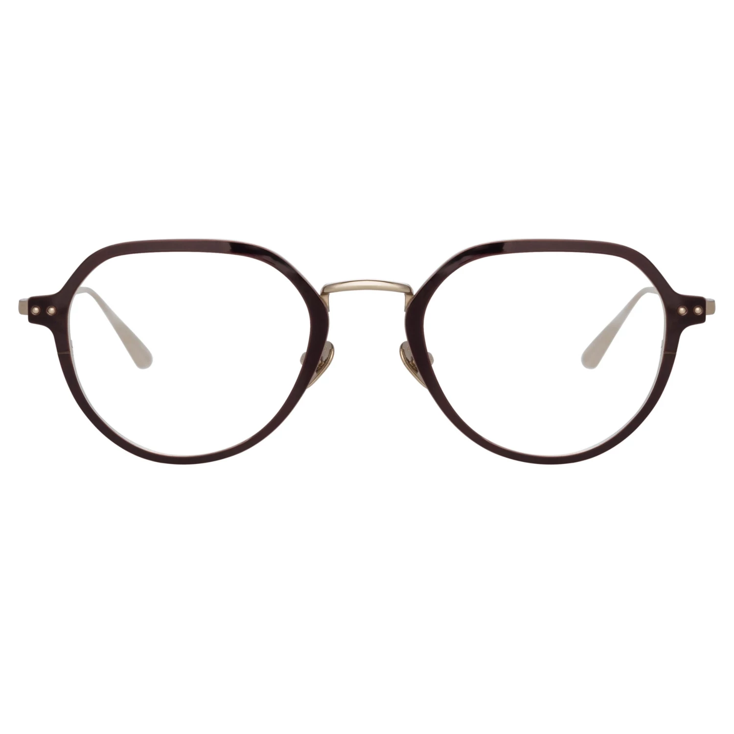 LINDA FARROW (U.K.) Axel Angular Optical Frame In Light Gold And Brown Women’s