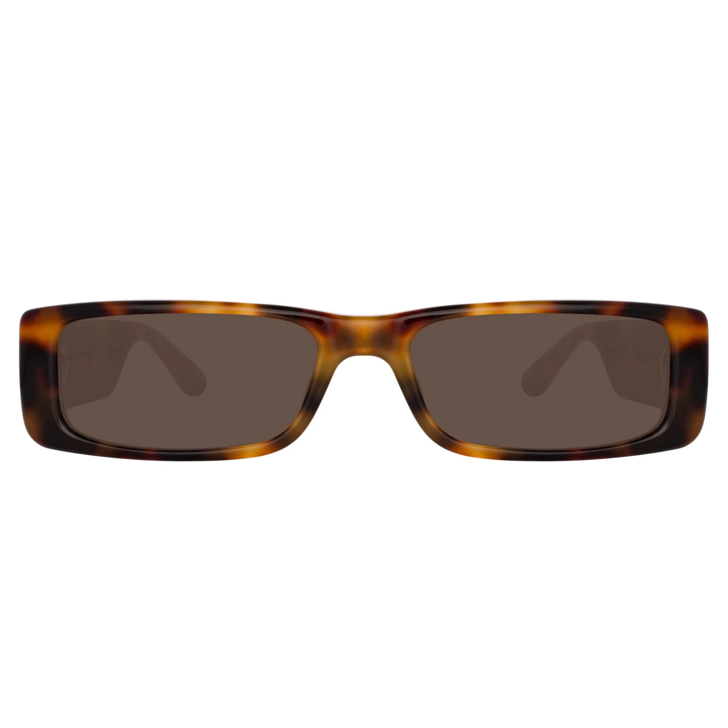 LINDA FARROW (U.K.) Dania Rectangular Sunglasses In Tortoiseshell