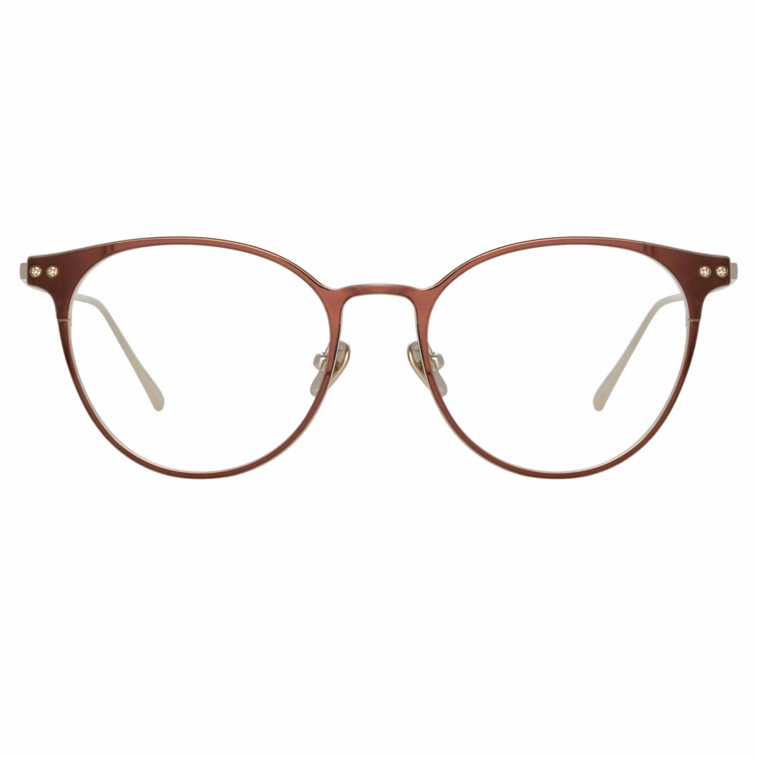 A modern classic, the Ricci optical glasses from the LINDA FARROW collection bring a subtle cat eye finish to an oval silhouette. Hand coated with a shiny brown lacquer, the front surface of the style provides a beautiful contrast the shiny 22 carat light gold plated frame which transitions into our sleek engineered temples. The logo nose bridge transitions to custom nose pads for a tailored fit.