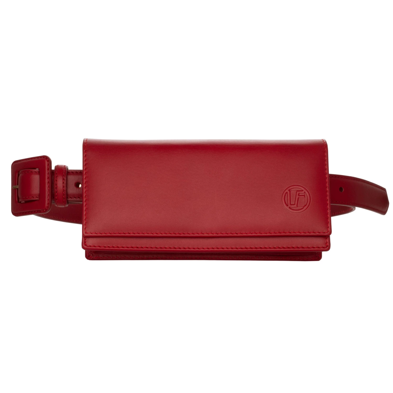 Elevate your sunglasses with handmade red leather sunglasses case. Produced in Spain from luxurious smooth calf leather, the LINDA FARROW belted case can be used with any standard size frames. The belt, which comes in one size, has a leather covered buckle and attaches to the pouch by threading through a channel on the back allowing the case to worn around the waist. Equally this is detachable so both pieces can be used separately. The accessory is finished with a press stud fastening and a raised ‘LF’ monogram, it is supplied in a velvet dust bag.