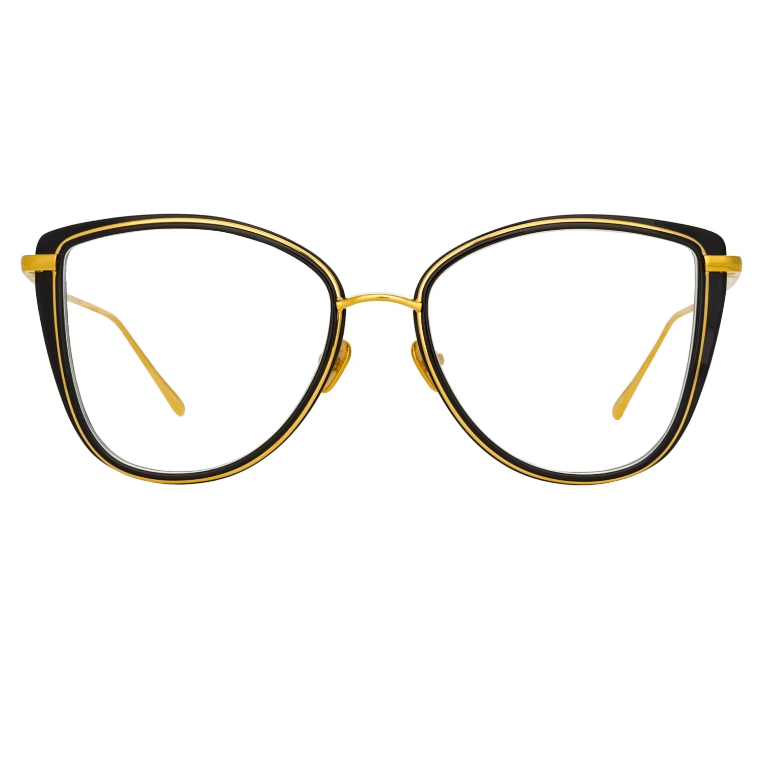 LINDA FARROW UK Liza Cat Eye Optical Frame In Black And Yellow Gold