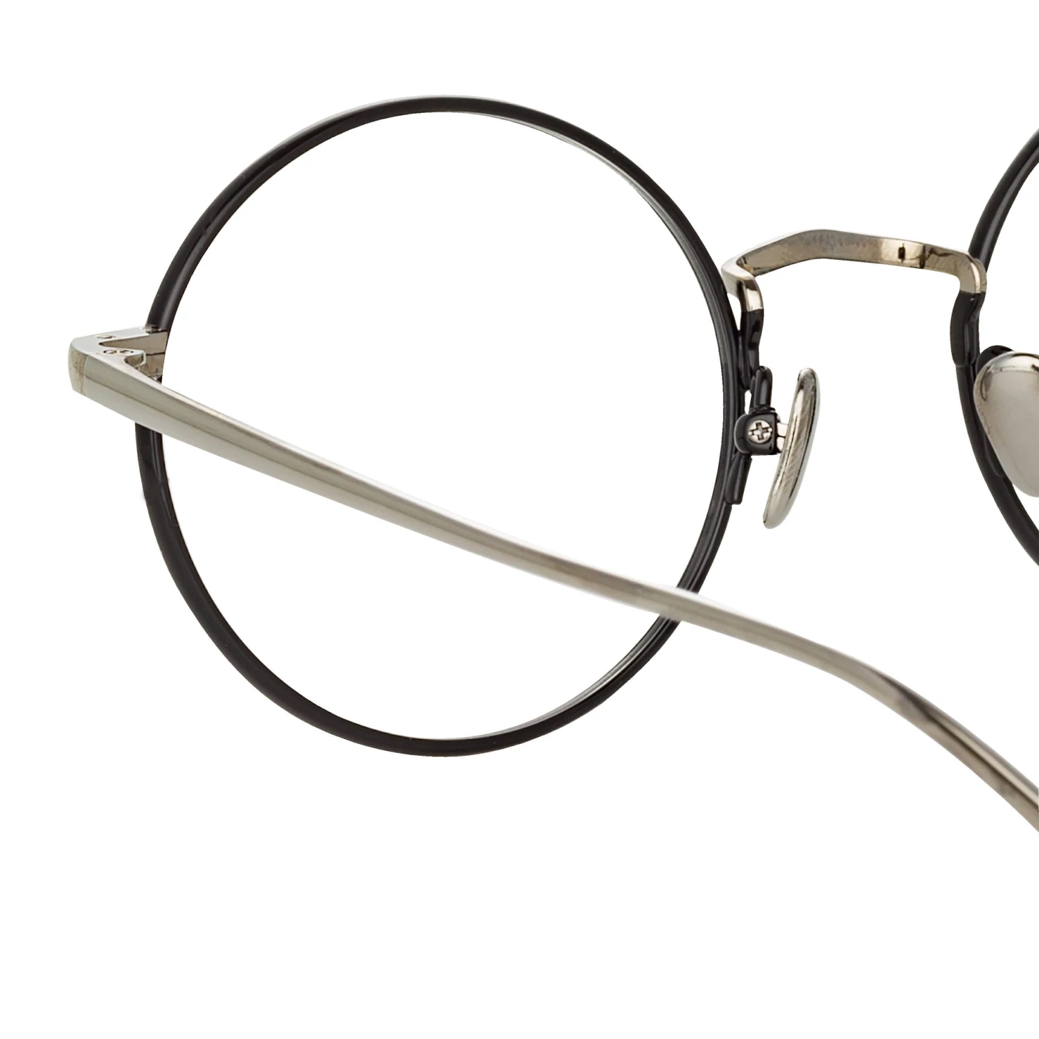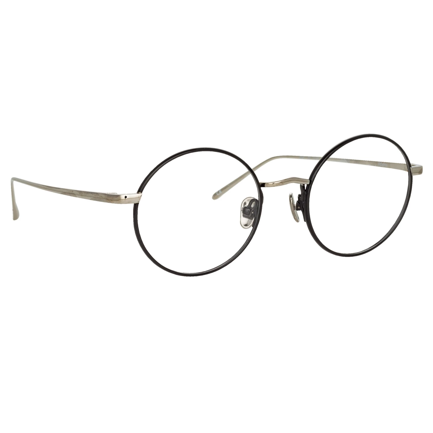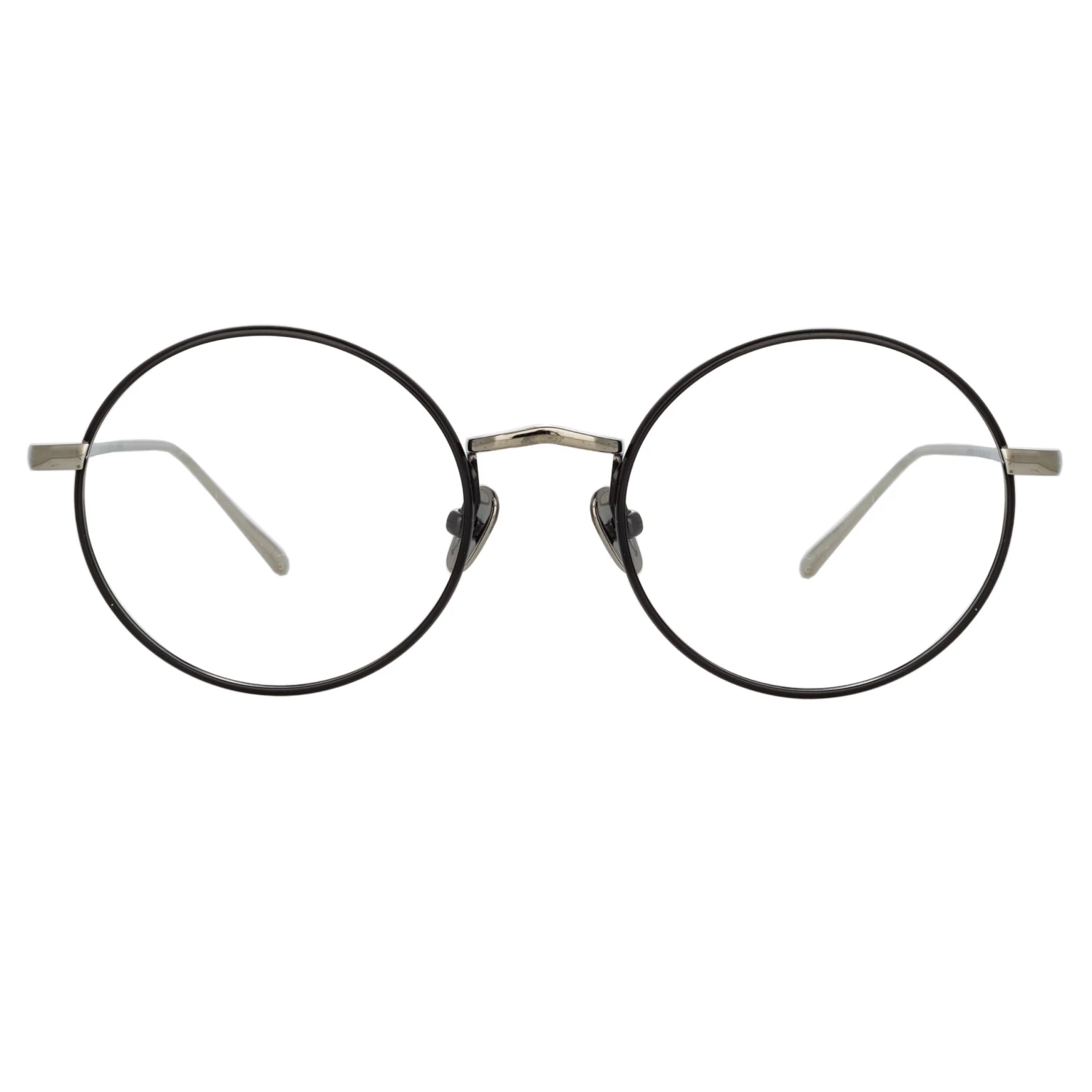 Finely crafted from pure Japanese titanium these optical glasses from the LINDA FARROW collection are simplicity executed with precision. Shiny black delicately hand painted rims are paired with sleek 22 carat white gold plated temples. The style is finished with adjustable nose pads for a tailored fit.