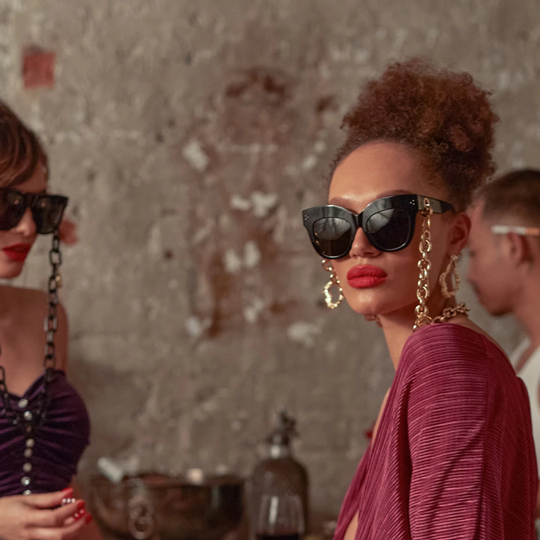 An iconic part of the collection, the Dunaway sunglasses are the embodiment of LINDA FARROW statement style. These exaggerated brow cat eye sunglasses are formed from recycled black acetate with sculpted nose pads and temple tips to provide comfort to the wearer. The temple bears our signature gold-plated titanium eyelet, compatible with our accessories, monogrammed with ‘London 1970’ to mark the founding of the brand. The frame is fitted with solid grey ZEISS technology lenses which offer ant-glare and 100% UV protection.